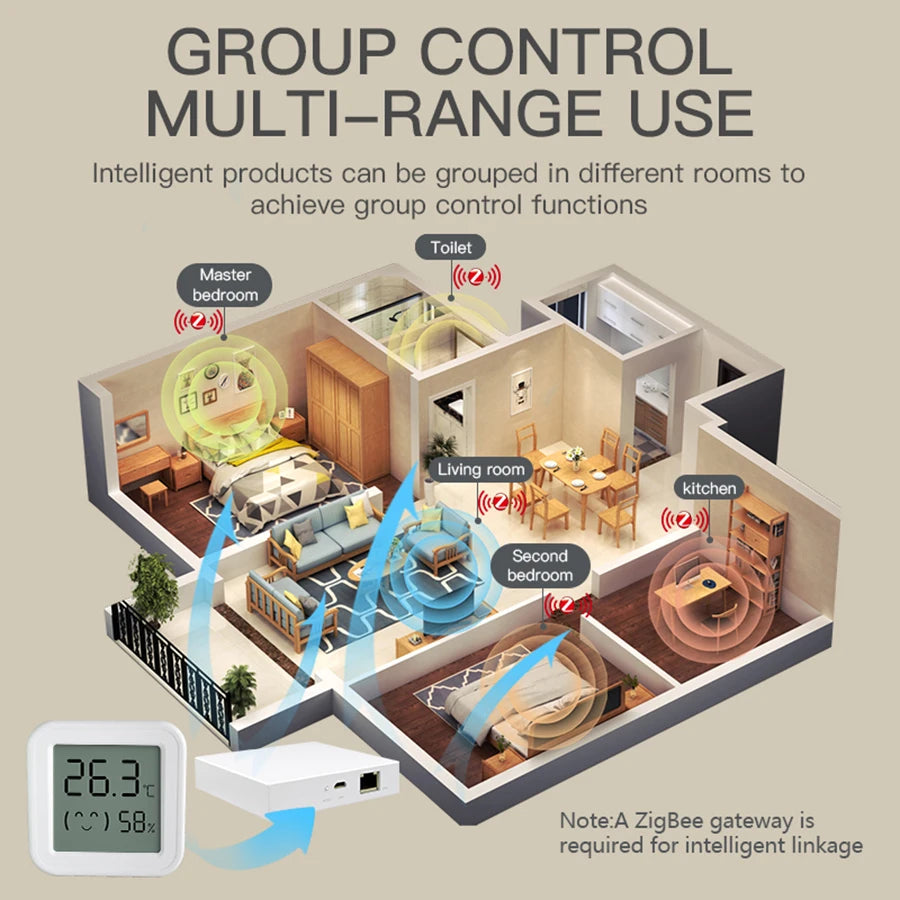 ✔ Lectura precisa de temperatura y humedad IDEAL PARA MÚLTIPLES USOS✔ Dormitorios También se puede usar en heladeras o superficies gracias a su diseño práctico. AUTOMATIZACIONES INTELIGENTESCombinado con otros dispositivos Tuya, podés: